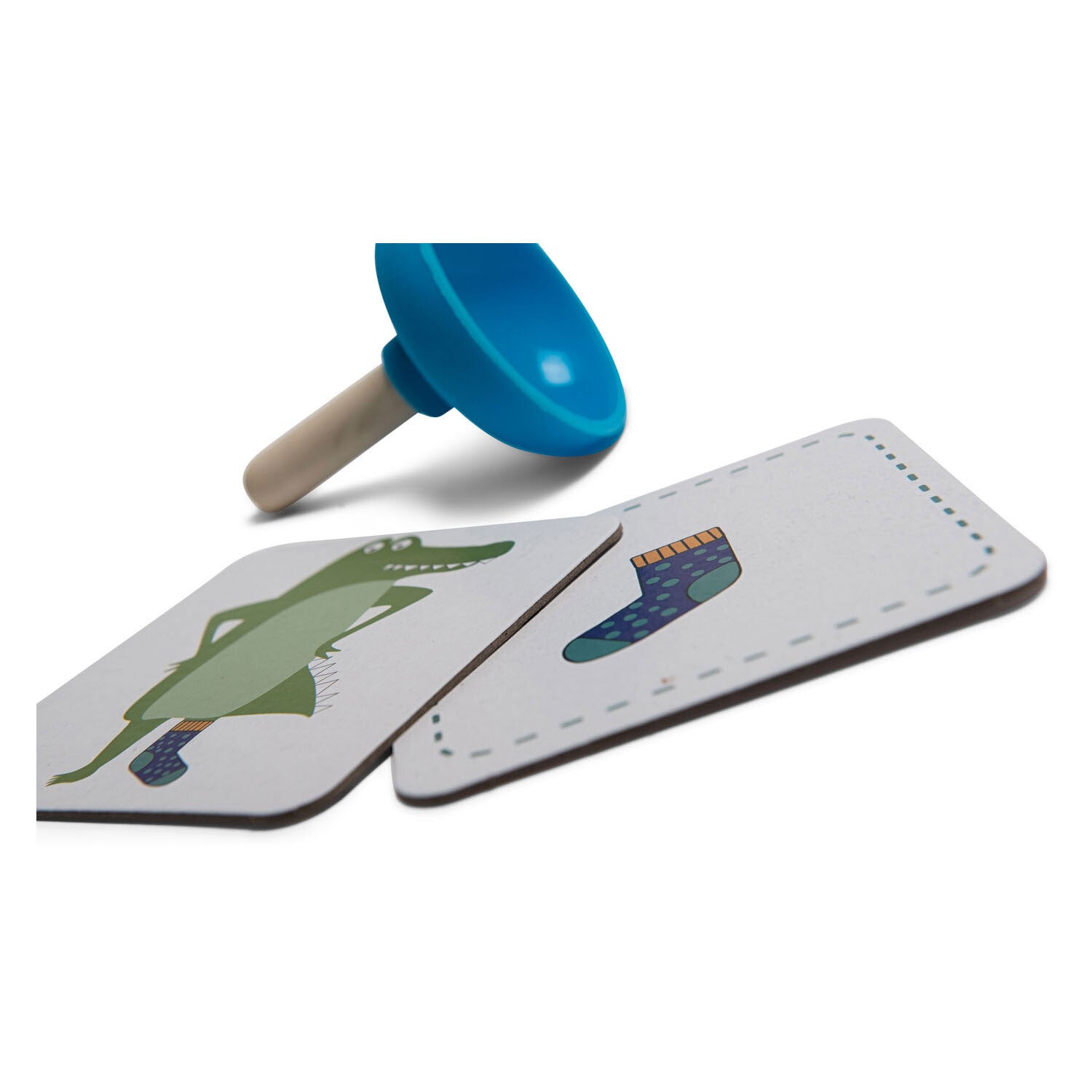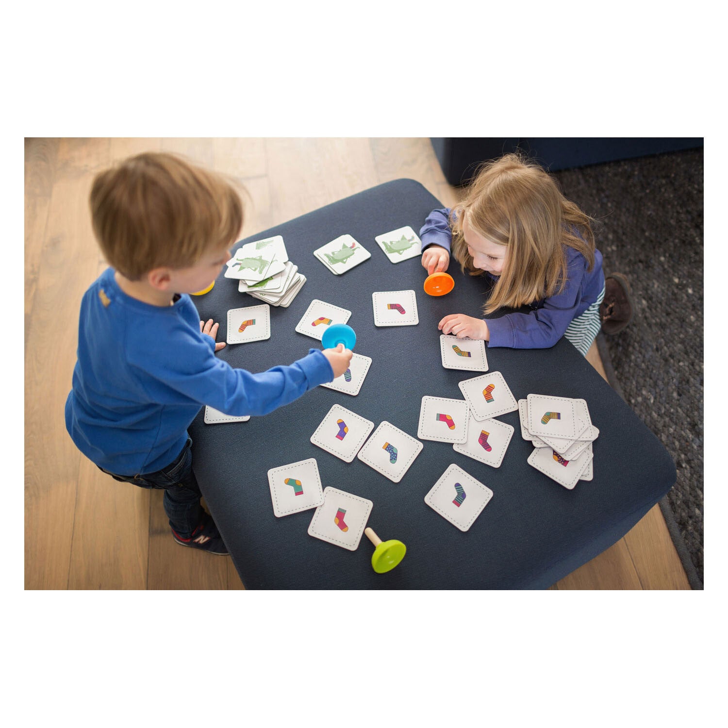 Oh oh...de krokodil is een beetje van slag. Hij is op zoek naar zijn sokken, maar hij kan geen gelijk paar vinden! Draai een kaart om en vind als eerste een sok met de plopper. Maar let op! Heeft de krokodil een linker sok of een rechter sok nodig?