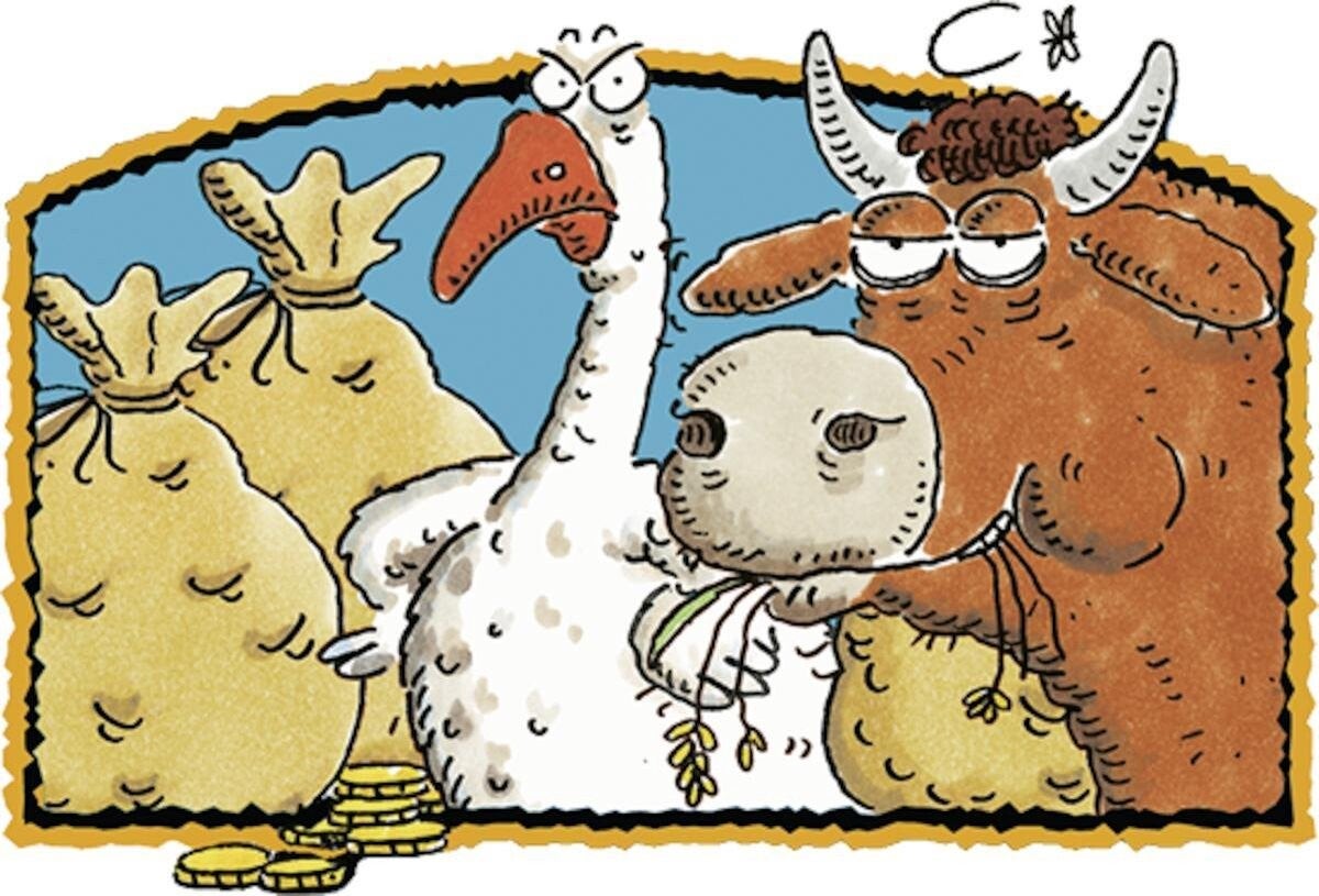 Éénmaal... andermaal... verkocht! Wie is de gelukkige eigenaar van de prijskoe Bertha of één van de andere dieren? Menige doortrapte koehandel loopt volkomen uit de hand. Maar wie heeft nu eigenlijk wie te pakken? Alleen wie met boerenverstand biedt en listiger is dan de rest krijgt de lucratiefste dieren in handen en wint koehandel van Ravensburger!
