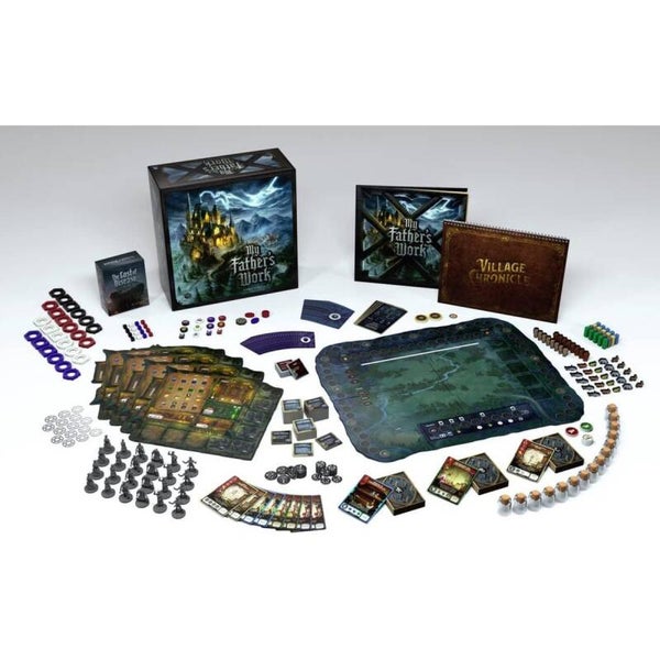 Twee tot vier spelers starten aan een meeslepende reis in een wereld vol wetenschappelijke intriges, elk belast met een pagina uit het mysterieuze dagboek van hun vader. Het uitgestrekt landgoed staat tot je beschikking, want het is tijd om boosaardige opdrachten uit te voeren, te concurreren met mede-wetenschappers en te racen om het belangrijkste experiment te voltooien. Wetenschap, strategie en een vleugje waanzin komen samen in je volgende je bordspelavonden met My Father's Work! Stap in de wereld van boosaardige experimenten!