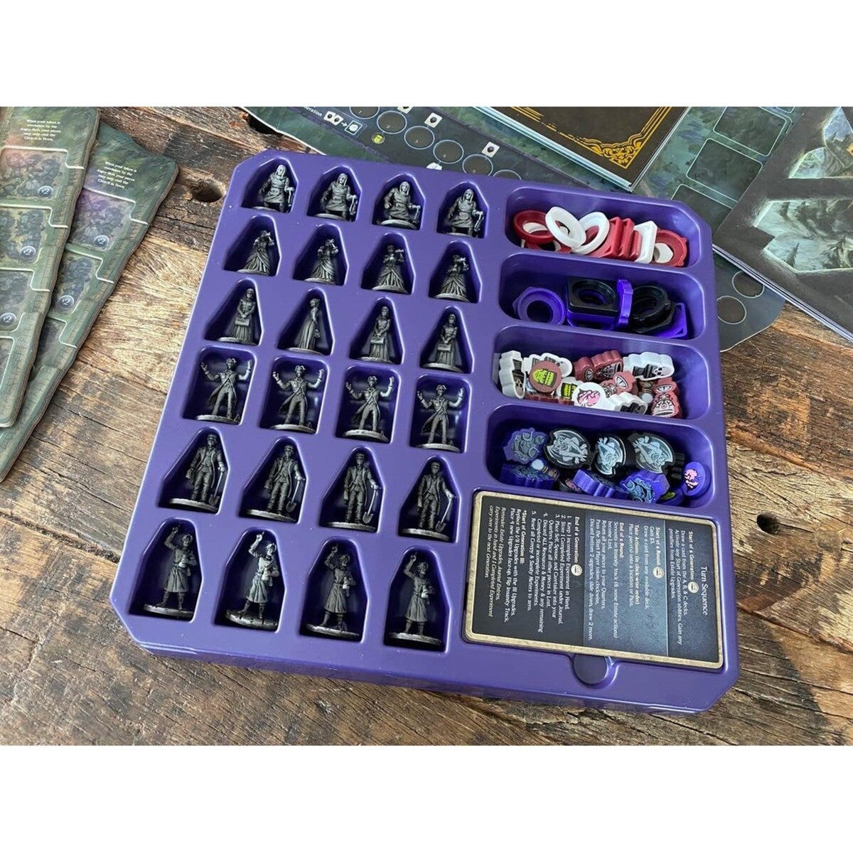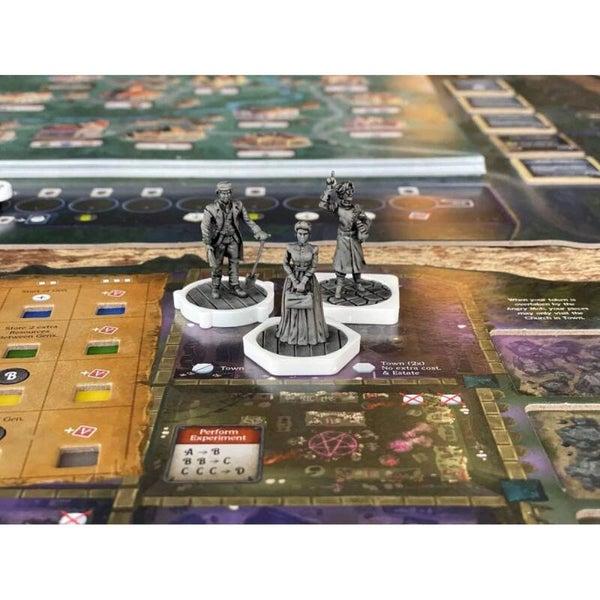 Inhoud: uitrusting1 Dorpskroniek Spelbord Boek, 4 Speler Landgoedborden, 28 A Experiment Kaarten, 24 B Experiment Kaarten, 32 C Experiment Kaarten, 12 Mislukking Kaarten, 24 Dwang Kaarten, 8 Meesterwerk Kaarten, 4 Speler Hulp Kaarten, 24 Miniatuurfiguren (4 van elk van de 6 ontwerpen), 24 Plastic Bases, 4 Score Teller Markers, 4 Waanzin Teller Markers, 4 Griezelige Teller Markers, 54 Landgoed Upgrade Tegels, 4 50+/100+ VP Munten, 8 Verhalenboek Munten, 4 Stemmunten, 1 Boze Menigte Munt, 1 Start Speler Munt, 60 Kennis Kubussen, 16 Dagboekspoor Kubussen, 15 Dierlijke Hulpbronnen, 15 Lichaams Hulpbronnen, 15 Fles Hulpbronnen, 15 Apparatuur Hulpbronnen, 30 Metalen Munten, 1 Regelboek, 1 Scenario I Doos - De Kosten van Ziekte, 2 Stretch Doel Scenario's