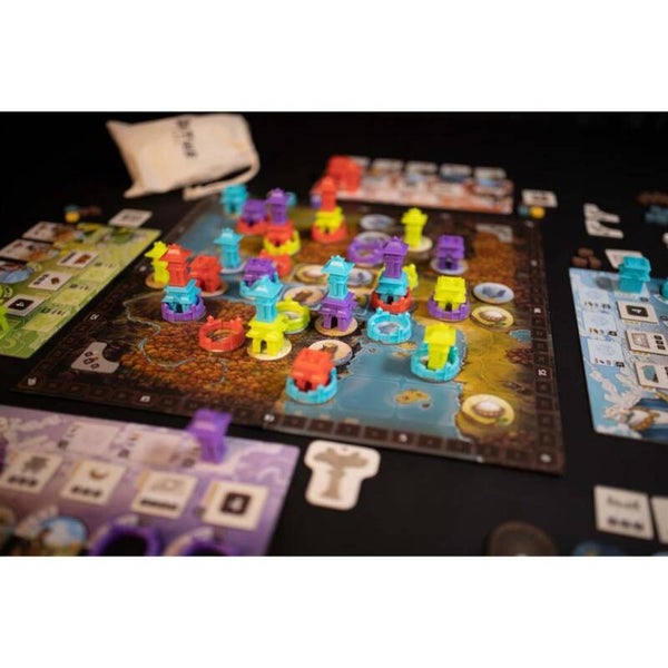 Plaats je fiches op de beste locaties en verzamel de essentiële grondstoffen voor de bouw van nieuwe gebouwen, zodat je uiteindelijk je invloedssfeer kunt uitbreiden. Gebruik discipel- en ontwikkelingstegels om je persoonlijke strategie uit te werken en uit te voeren, waardoor je spel meer diepte krijgt.